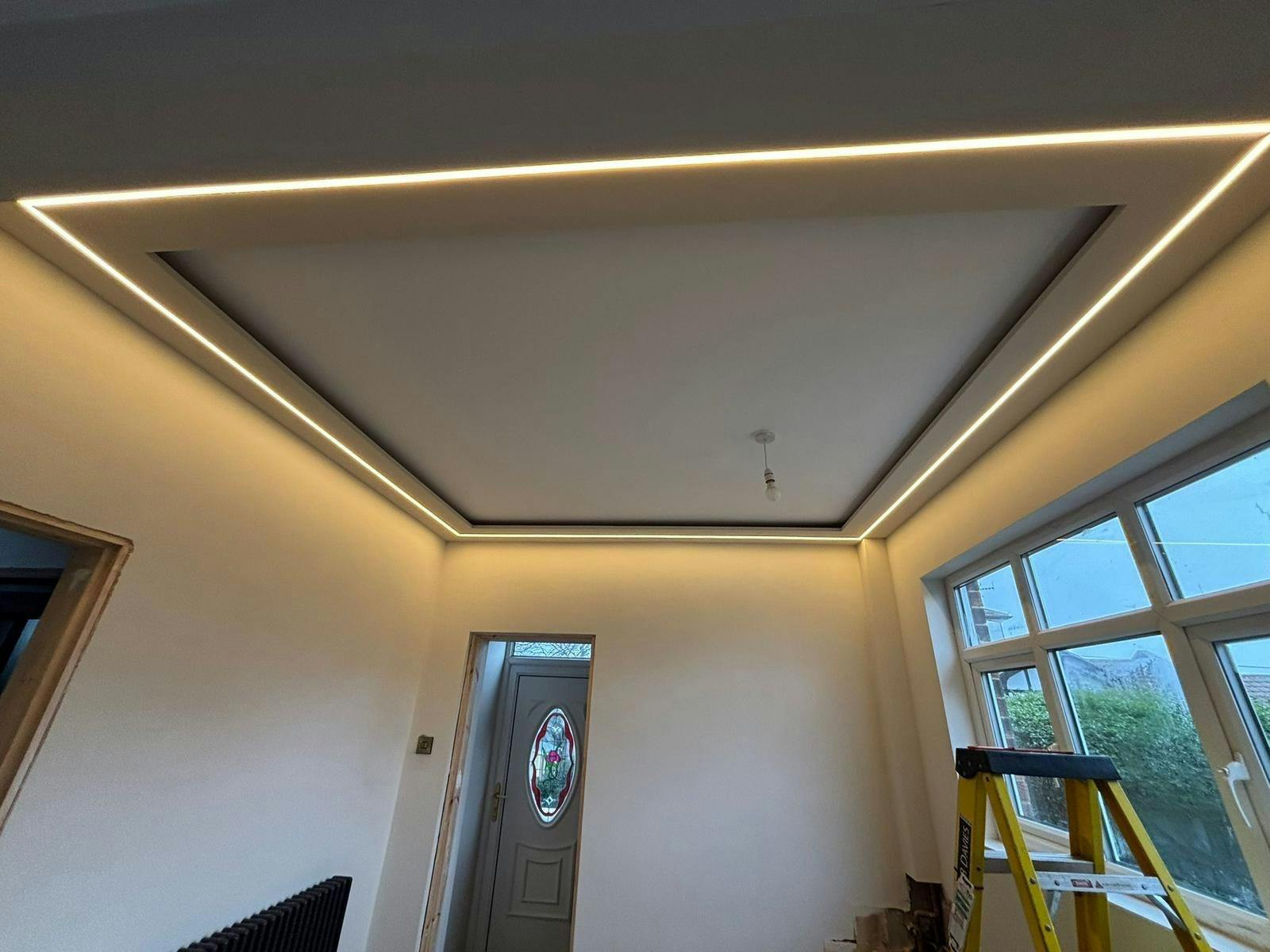 • Hi there im currently looking for a strip light kit warm white i need 2 strips roughly 5 meters that can be cut to the size I need. The 2 strip lights are on either side of the room so the need to be connected together with wire so they can be turned on and off at the same time by the same switch I also want to hardwire it with the other lights on a light switch is this something you provide ?