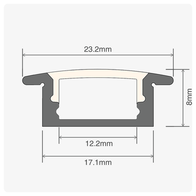 1m ALU02 Recessed LED Profile, 23.2 x 8mm