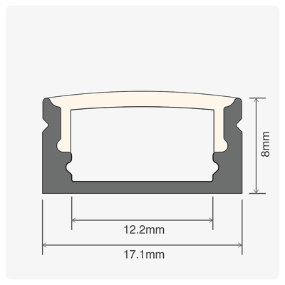 1m ALU05 Surface Mounted LED Profile, 17.1 x 8mm