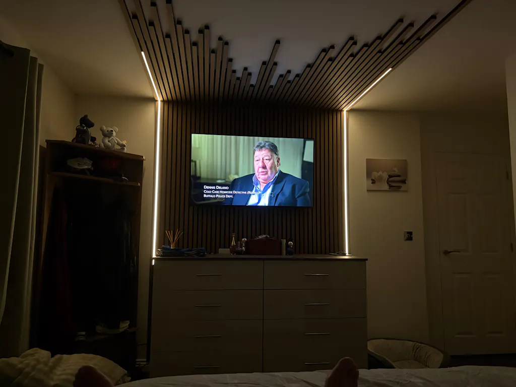 Meet BLAQ Aura, the ultimate lighting upgrade for your slat wall panels. When turned off, it blends seamlessly into dark interiors like magic. Switch it on, and it fills your space with a warm, luxurious glow that elevates the mood instantly.
