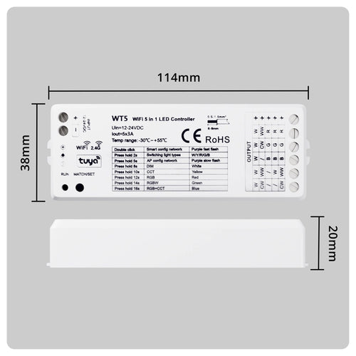 • Channel Output Current: 5A per channel (SC/CCT), 3A per channel (RGBW)